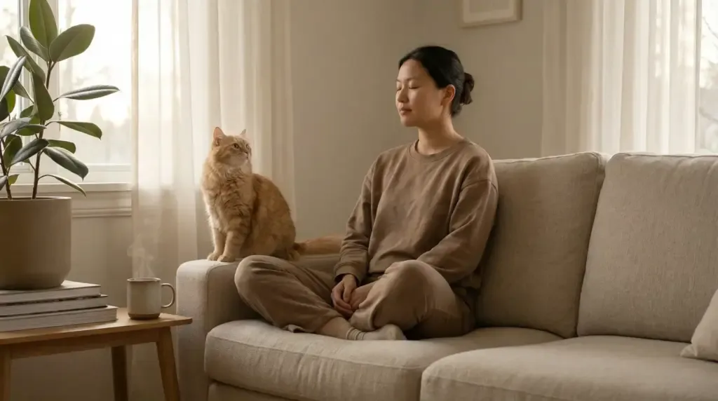 If you are someone who sits still, breathes deeply, and doesn’t make sudden movements, you are basically a five-star resort for a cat. By picking you, they are saying: “I trust you not to startle me. Your energy is peaceful.”