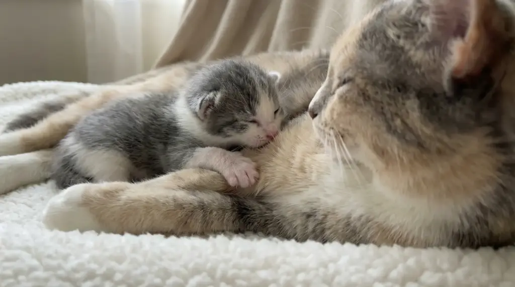 Leticia Fanucchi, an animal behavior scientist at Oklahoma State University, explains: “The way the behavior starts is: they knead the mother’s mammary glands to actually suck the milk.” Kittens instinctively press their tiny paws against their mother’s belly to stimulate milk flow while nursing.