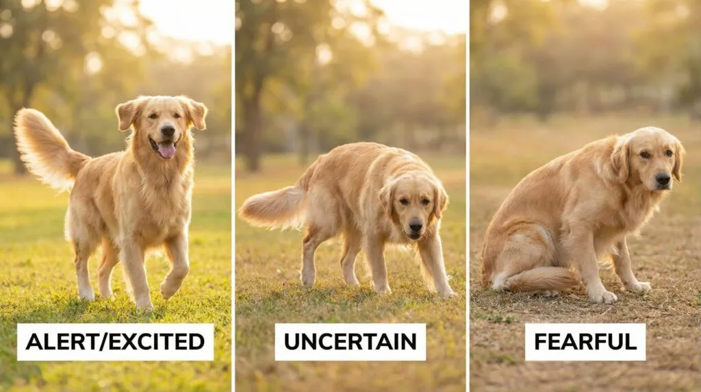 A wagging tail doesn’t always mean happiness. I learned this the hard way at the dog park when a stiff, high, fast-wagging tail turned into a warning I didn’t see coming. Now I know: helicopter wags mean joy. Low, slow wags mean uncertainty. Tucked tails mean fear. And sometimes a wagging tail is just a dog trying to figure out how they feel about something.