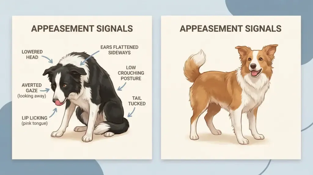 The lowered head. The averted gaze. The lip licking. The tucked tail. The crouching posture. Every single one of these behaviors is a dog’s way of saying: “I see you’re upset. I’m not a threat. Please don’t hurt me.”
