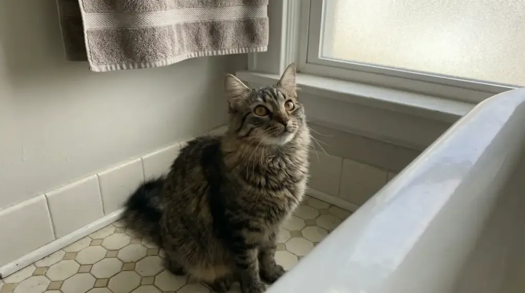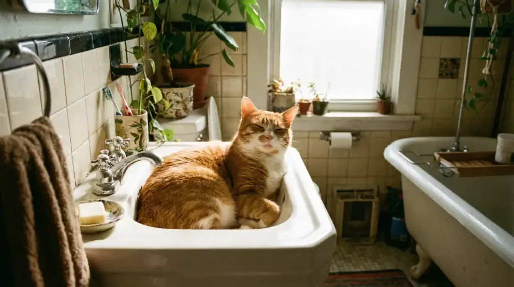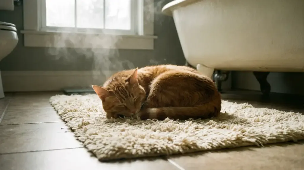 After a shower, that room is basically a cat sauna. The bathmat is soft. The floor might be heated. And you’re in there, generating body heat like a walking radiator.