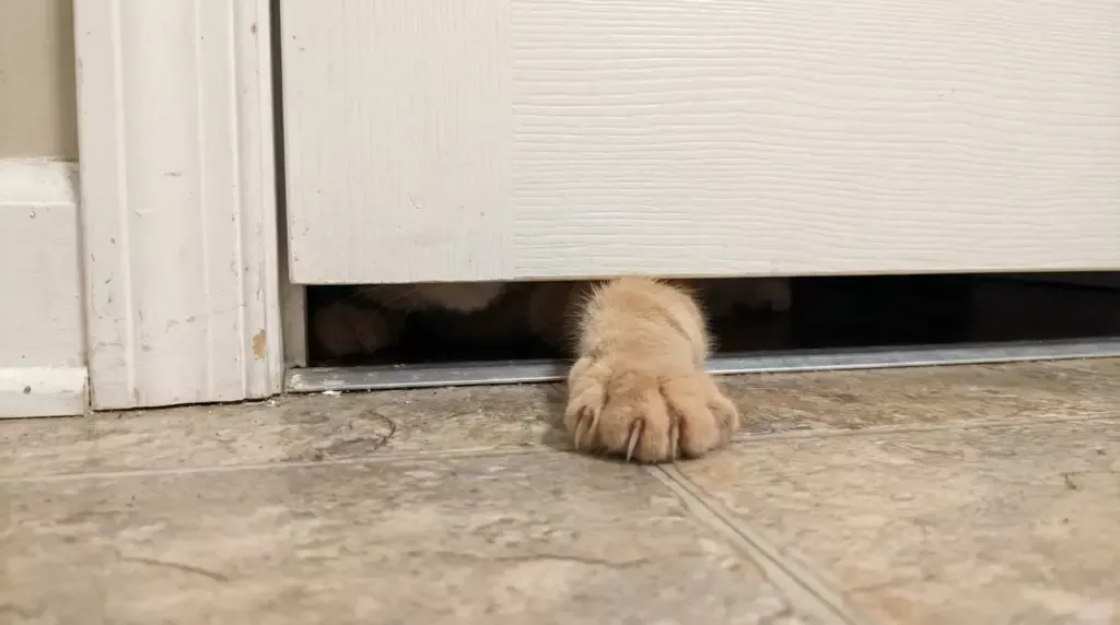 That little scratch. The meow. The paw sliding underneath like a furry periscope scanning for signs of life.